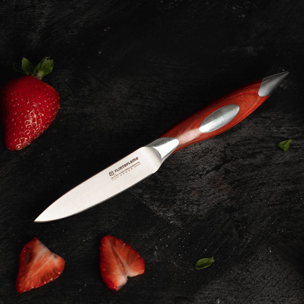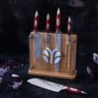 The Flint & Flame 5 Piece Bulk Set combines a versatile selection of knives with a magnetic block for practical storage and stylish presentation in the kitchen.