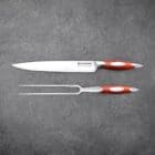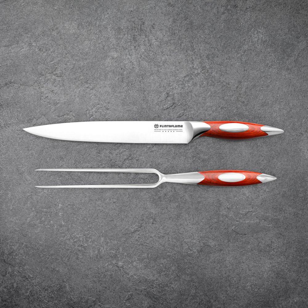 • Includes 9-inch carving knife, carving fork, 8-inch Santoku knife, 6-inch Santoku knife, and 3.5-inch paring knife