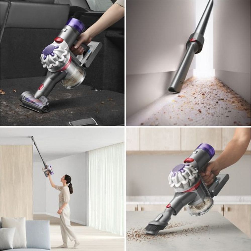 The Dyson V8 Absolute Cordless Vacuum in Silver/Yellow is a lightweight and versatile stick vacuum designed for deep cleaning across multiple floor types, with strong suction and cordless convenience.
