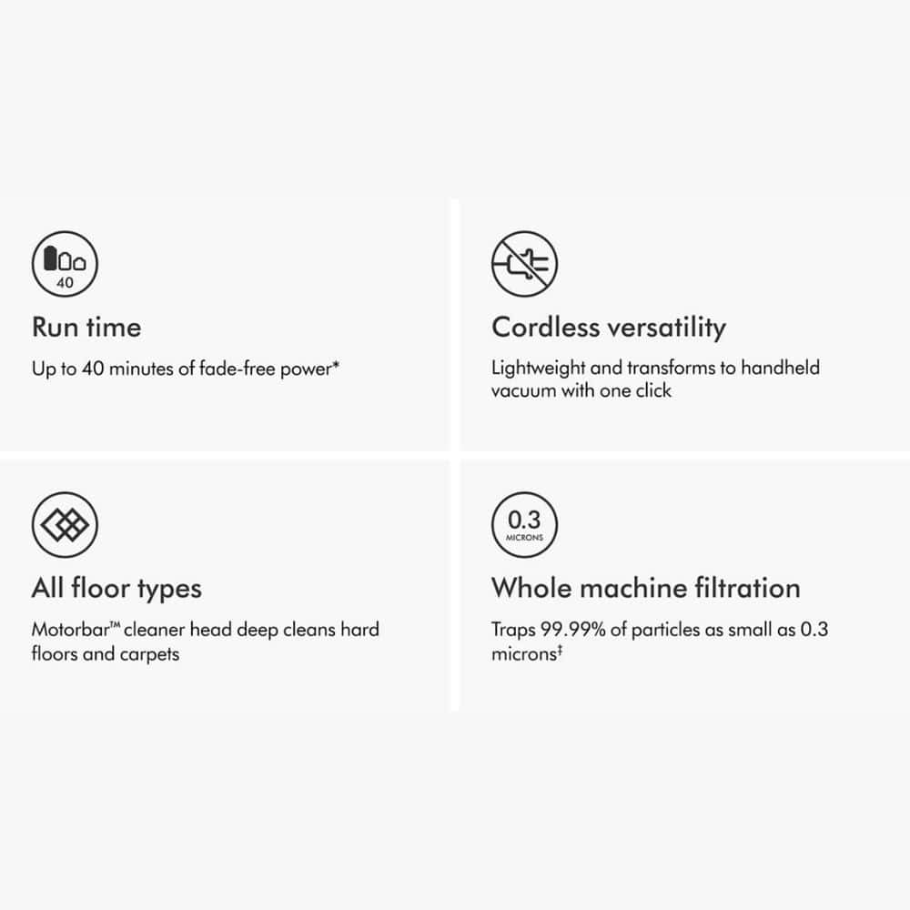 • Dyson digital motor delivers up to 115 Air Watts of suction power