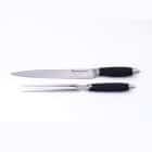 Key features include a high-quality carving knife and matching fork, both crafted from German carbon steel for exceptional strength and edge retention. The knife features a tapered blade that allows for paper-thin slices of poultry, beef, or lamb without tearing the meat. Both tools are designed with the signature contoured handle which provides a comfortable and secure grip, ensuring you have total control while carving at the table. The set is balanced to reduce hand fatigue during use and the polished finish makes it a stylish addition to any serving set.