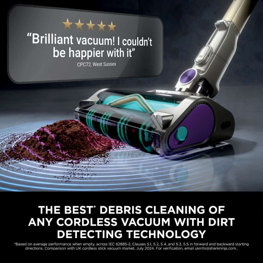 The cleaning head itself uses DuoClean Detect technology, combining two motorised brush rolls that work together to snag large debris and lift fine dust without you ever having to switch floor heads. For pet owners, the Anti-Hair Wrap system is a lifesaver, actively removing hair from the brush roll as you clean so it stays tangle-free. It also features Shark’s Odour Neutraliser Technology, which uses a replaceable cartridge to guard against “doggy” smells inside the vacuum, ensuring your home smells as fresh as it looks.