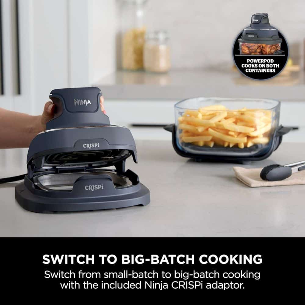 The Ninja Crispi in Cyber Space is a game-changing, all-in-one appliance that combines the speed of an air fryer with the convenience of premium glass bake-and-store ware for a totally seamless cooking experience.