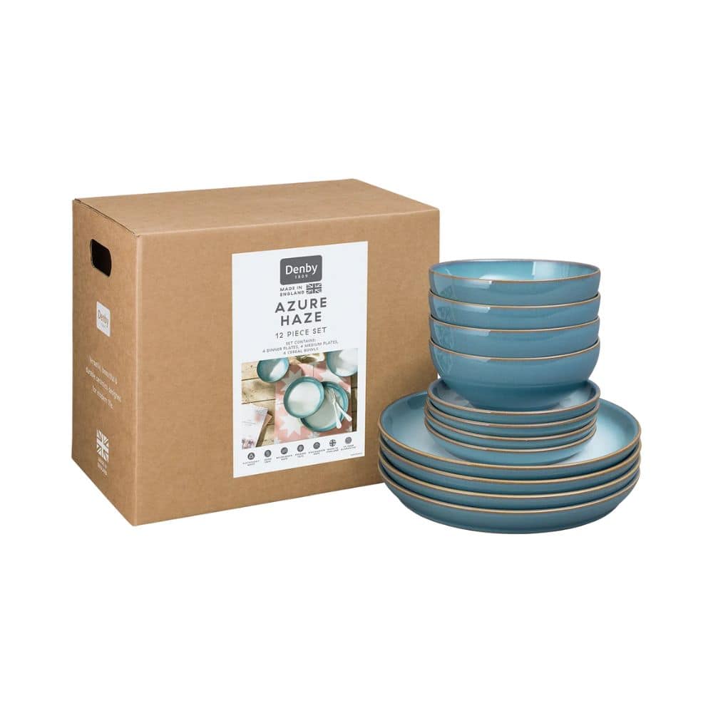 Denby Stoneware Azure Haze 12pc Coupe Tableware Set