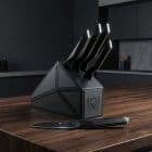 This 5-piece collection is housed in a sleek, space-saving oak wood block and includes: