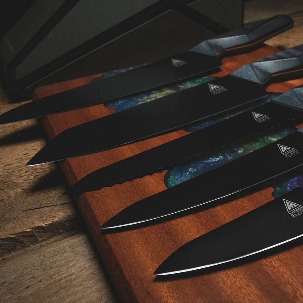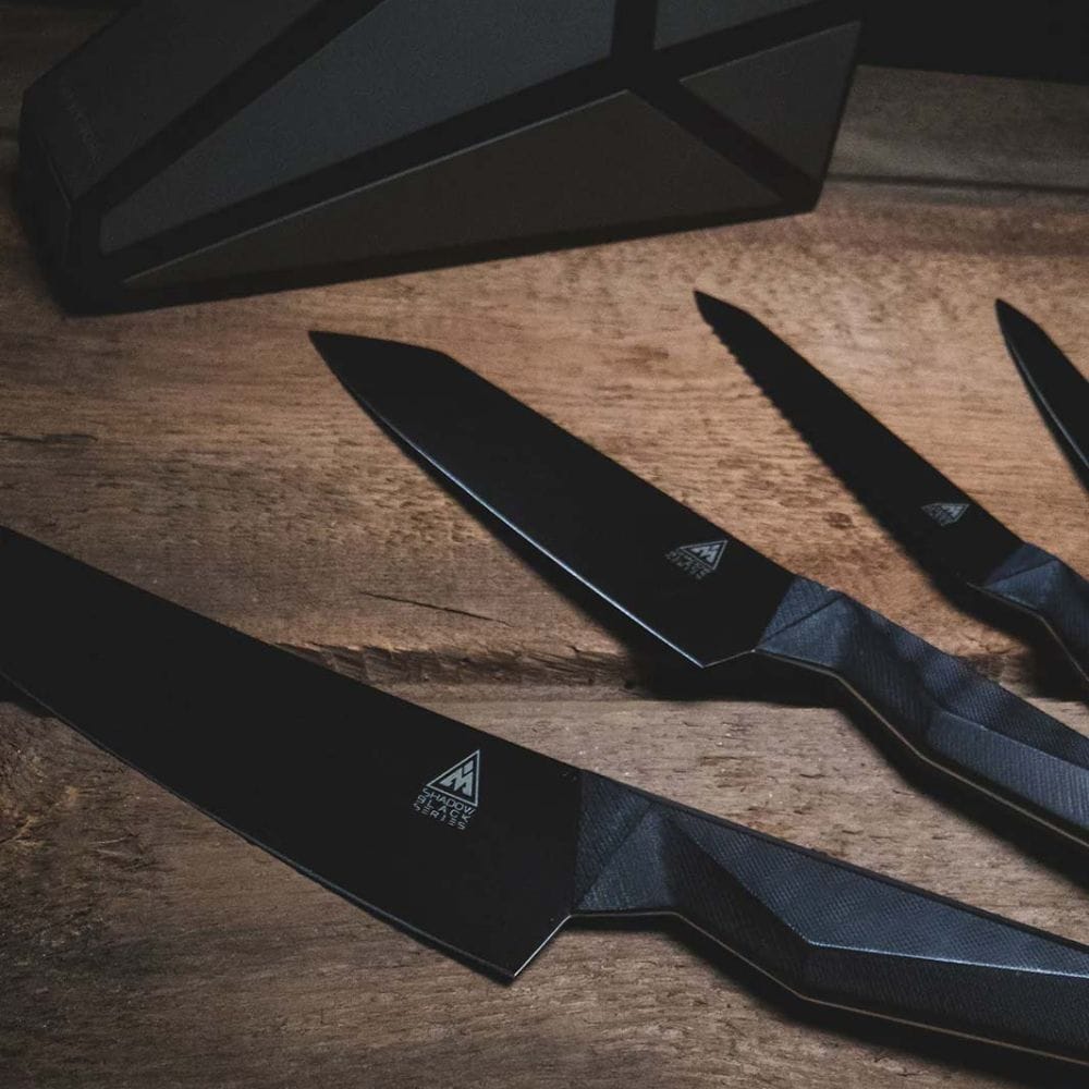 Turn your kitchen into a tactical prep station with a knife set that looks like it was inspired by a stealth fighter. Full detail below.