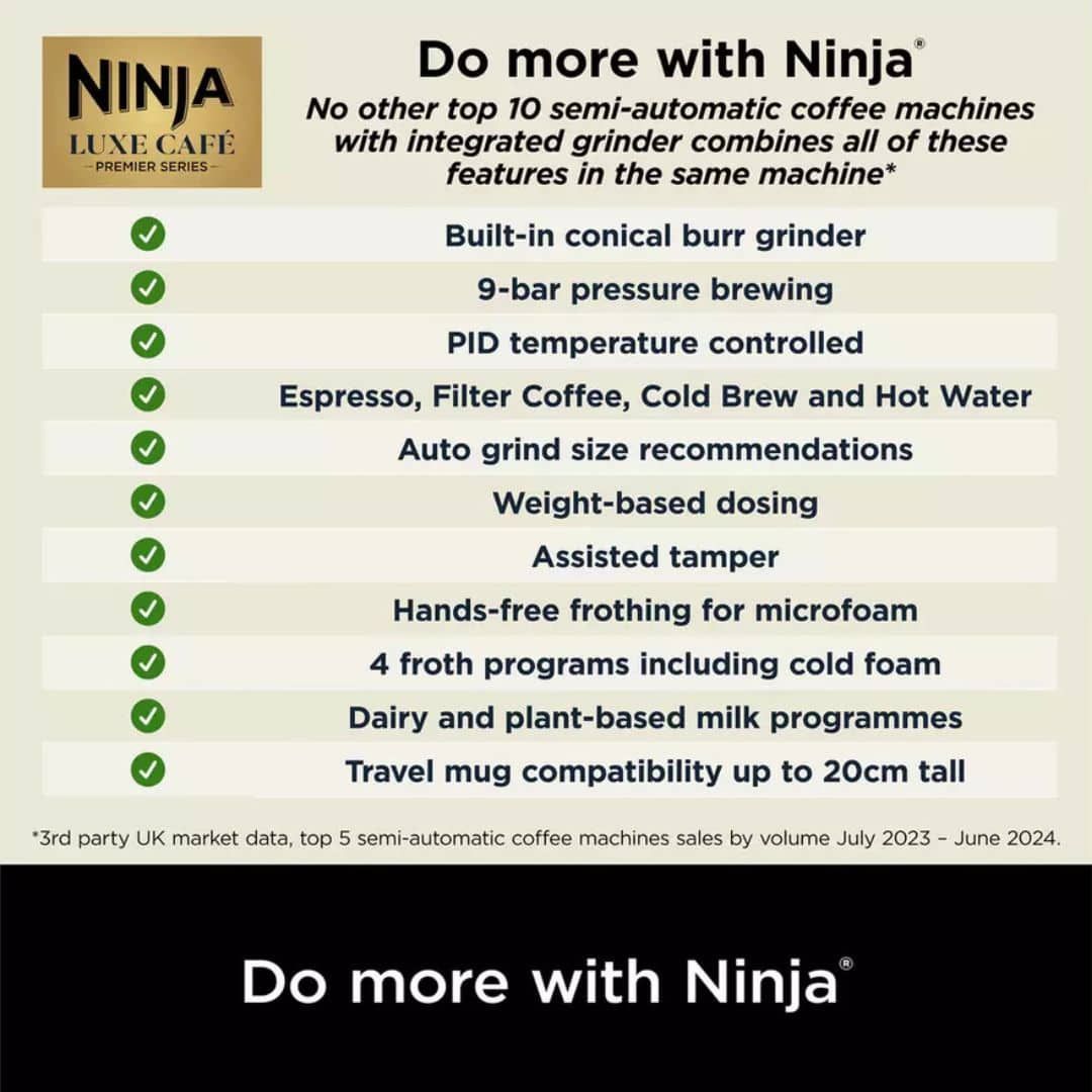 The Ninja Luxe Premier 3‑in‑1 Coffee Machine is a premium, multifunctional bean‑to‑cup machine that handles espresso, cappuccino, latte and cold‑brew with ease.