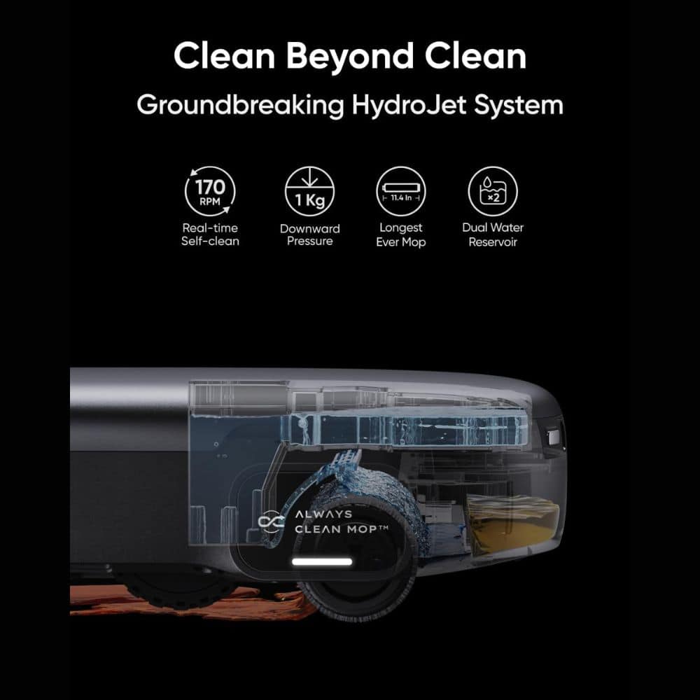 Reclaim your weekends and experience “clean beyond clean” with a robot that doesn’t just push dirt around but actively scrubs your floors with fresh, sterilised water. The eufy Omni S1 Pro features a revolutionary Always Clean Mop system – a 29cm roller mop that spins at 170 RPM with 1kg of downward pressure, mimicking a manual hand-scrub. Unlike standard robots, it features a dual-water reservoir that continuously rinses the mop with clean water as it works, so you’re never mopping with dirty residue.