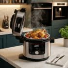Take your meal prep to the absolute limit with a 7.5-litre powerhouse that replaces nearly every appliance on your worktop. The Ninja Foodi MAX 15-in-1 features the innovative SmartLid Slider, allowing you to switch between three modes - Pressure Cook, Air Fry, and Combi-Steam - without ever needing to swap lids. The standout feature is the Combi-Steam mode, which uses a mix of steam and convection to cook a whole roast chicken in under an hour, resulting in meat that is incredibly juicy on the inside and perfectly crisp on the outside.