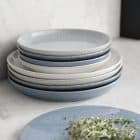 Bring a sense of calm, artisanal beauty to your dining table with a set that celebrates the textures and tones of the coast. The Denby Studio Blue collection is handcrafted in Derbyshire and features four tonal glazes - Chalk, Pebble, Flint, and Cobalt - that work in harmony to create a relaxed, layered look. This 12-piece set is perfectly proportioned for four people, including four dinner plates, four medium plates, and four cereal bowls, all featuring a modern, minimalist shape that lets the glaze do the talking.