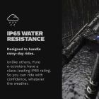 Engineered to withstand the unpredictability of the British weather, the Pure Air5 Pro is a 2026 high-performance model built with a focus on durability and rider confidence. It features a motor with a 350W nominal output that peaks at 840W, providing enough torque to handle steep inclines and responsive starts. The scooter’s hallmark is its IP65 water-resistance rating, ensuring the internal electronics remain protected even during heavy rain or when encountering puddles.