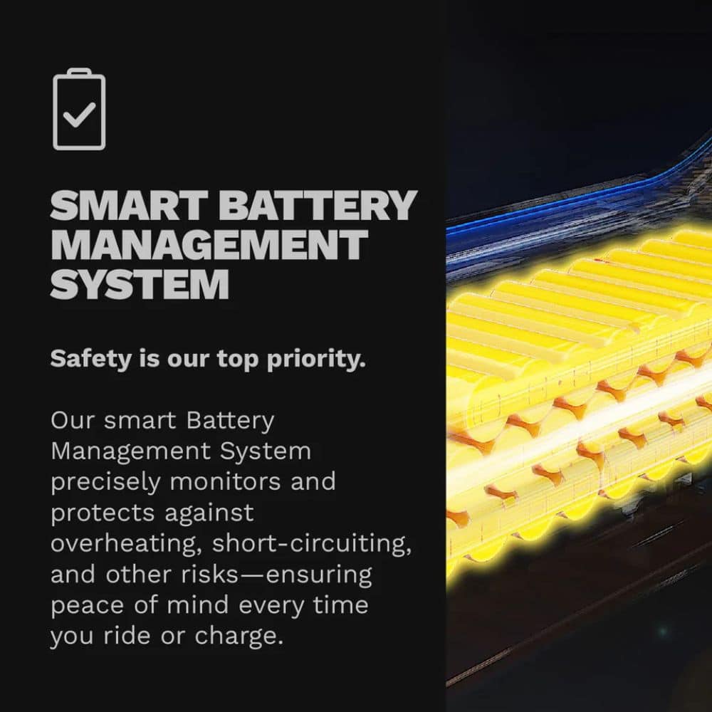 • Safety: Features a dual braking system and integrated steering stabilisation to help prevent handlebar “wobble” and provide a smoother ride.
