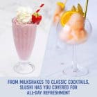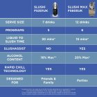 The machine offers 6 customisable programmes: Slush, Spiked Slush (for higher alcohol content), Frappé, Milkshake, Frozen Juice, and the new Frozen Cocktail Max. With an easy-pour handle and a whisper-quiet compressor, it can maintain the ideal frozen consistency for up to 12 hours. All detachable parts, including the vessel and the drip tray, are dishwasher-safe for a seamless cleanup.